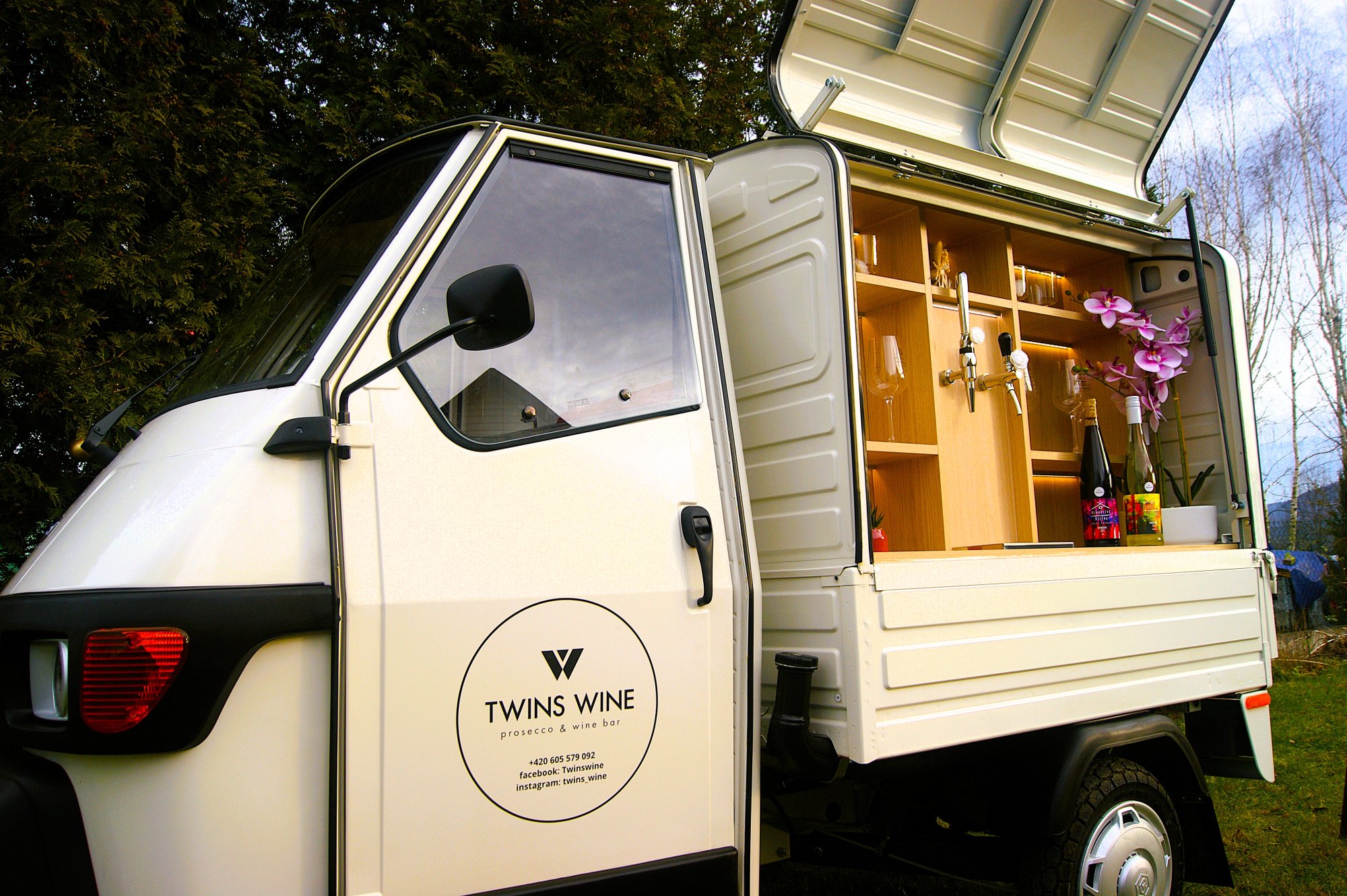 Stylová tříkolka Piaggio Ape doplní i oslní při každé příležitosti. Dodejte Vaší události styl. Jakákoli významná chvíle může být obohacena o zážitek ve formě kvalitního prosecca, vína či piva z výčepu. Milovníci italského prosecca či jihomoravského frizzante ocení příjemně vychlazené bublinky, ať už se vaše akce koná na louce, soukromé zahradě, či stodole. Hosté preferující pivo si také přijdou na své. Dětská party s točenou limonádou nadchne nejedno malé srdíčko. Dvě výčepní hlavy nabízí libovolnou konfiguraci vyhovující přesně vašim hostům.