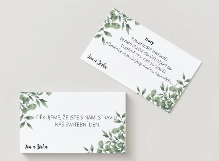 Rekvizity jsou tištěny na tvrdém papíru o gramáži 250g/m2.