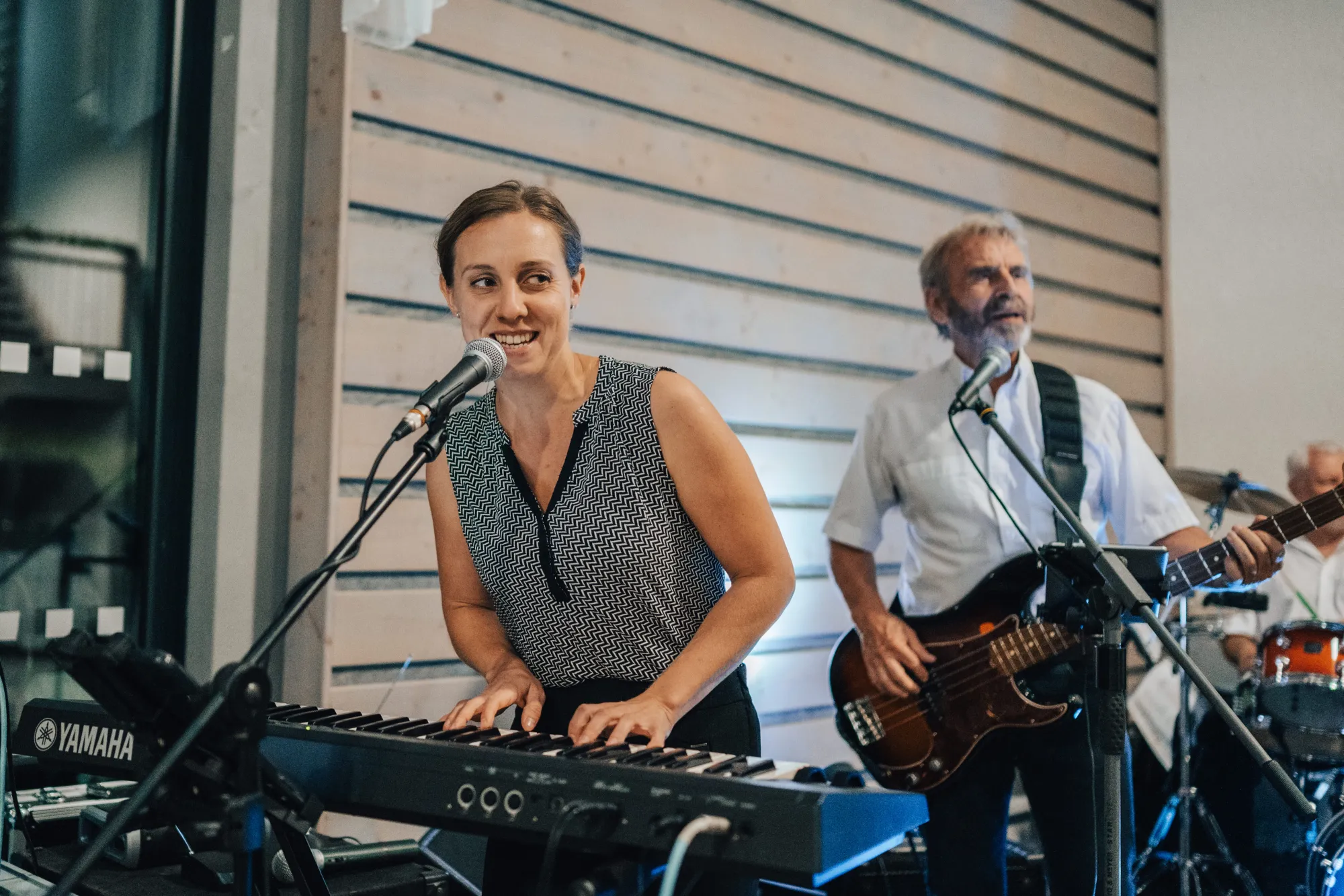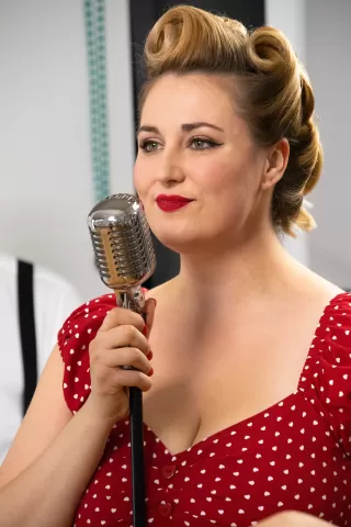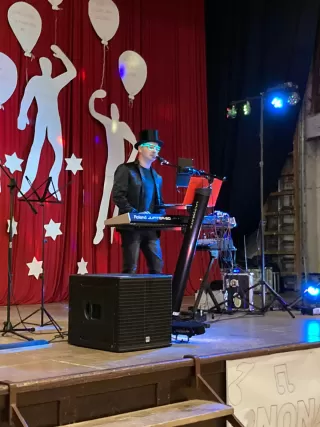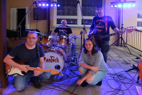 Dvě mladé dámy a tři zkušení muzikanti hrají v obsazení kytara, klávesy, basa, bicí, zpěv. Žádné hotové podklady, klávesové samohrajky, žádný playback.