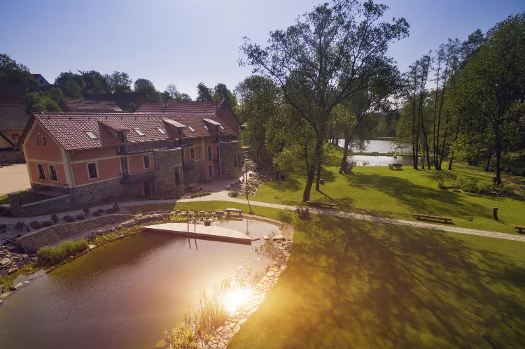 Vyslovte nejdůležitější slovo svého života na molu u rybníka s výhledem na okolní zalesněné kopce, nebo se vezměte bosky na louce obklopeni vzrostlými stromy. Romantice pod širým nebem se u nás meze nekladou. Nebo byste raději zimní intimní svatbu za zvuku praskajícího dříví v krbu? Osobní nebo okázalá svatba, uvnitř nebo pod širým nebem, areál celého našeho statku je vám exkluzivně k dispozici pro to, aby se vaše sny a představy staly skutečností.