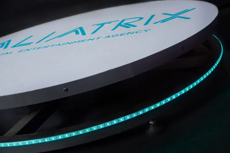 Video doplníme o proužek s grafikou vaší akce. Můžeme také přidat například dekorační LED tyče, které budou zářit v barvě podle vašeho výběru.