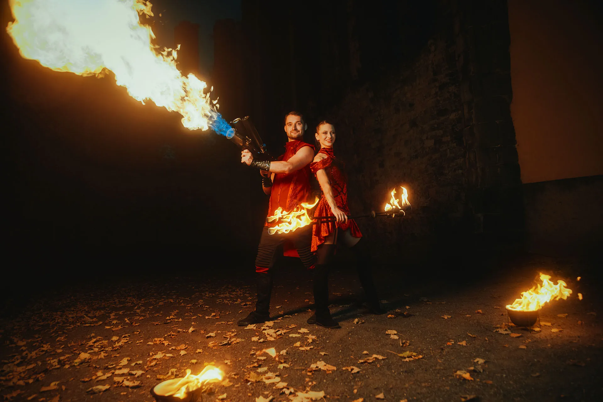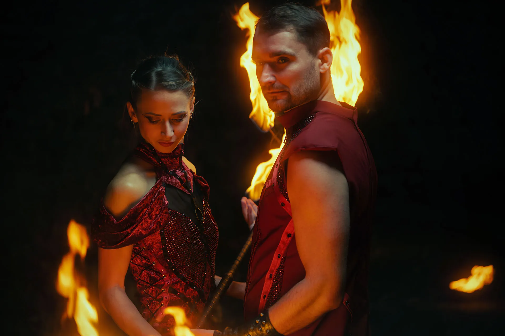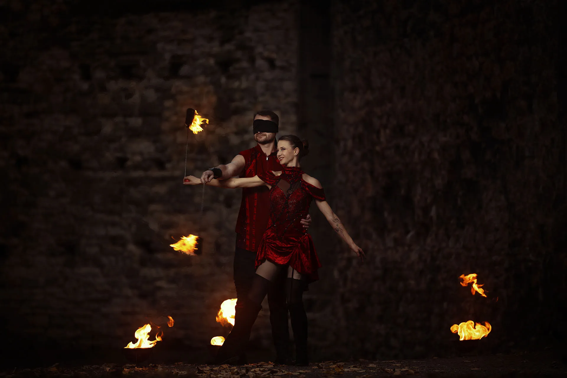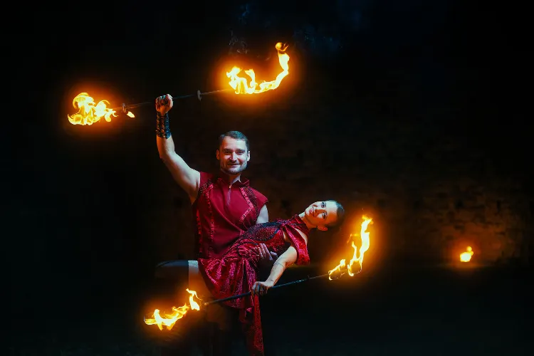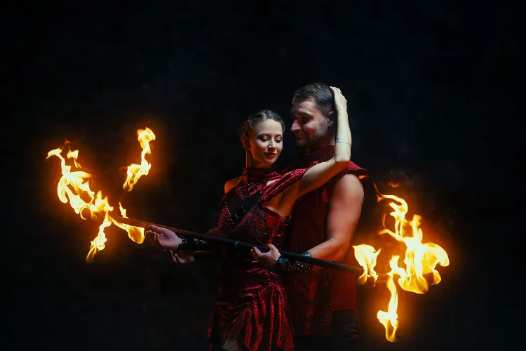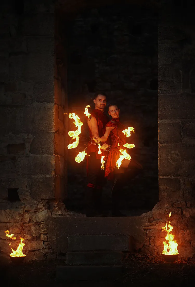 Dopřejte novomanželům zážitek, na který budou dlouho vzpomínat. Pozvěte si dvojici ohnivých umělců, kteří zpestří večer romantickou fireshow. Láska, touha, důvěra, odvaha - silný vztah je plný emocí, které se snažíme vystoupením předat. Veškeré podrobnosti s vámi domluvíme tak, aby vše sedělo vašim představám. Každá svatba je jedinečná a my se chceme postarat o prožitek připravený přímo pro vás. Vystoupení rádi upravíme na míru například zapojením oblíbené písničky novomanželů.