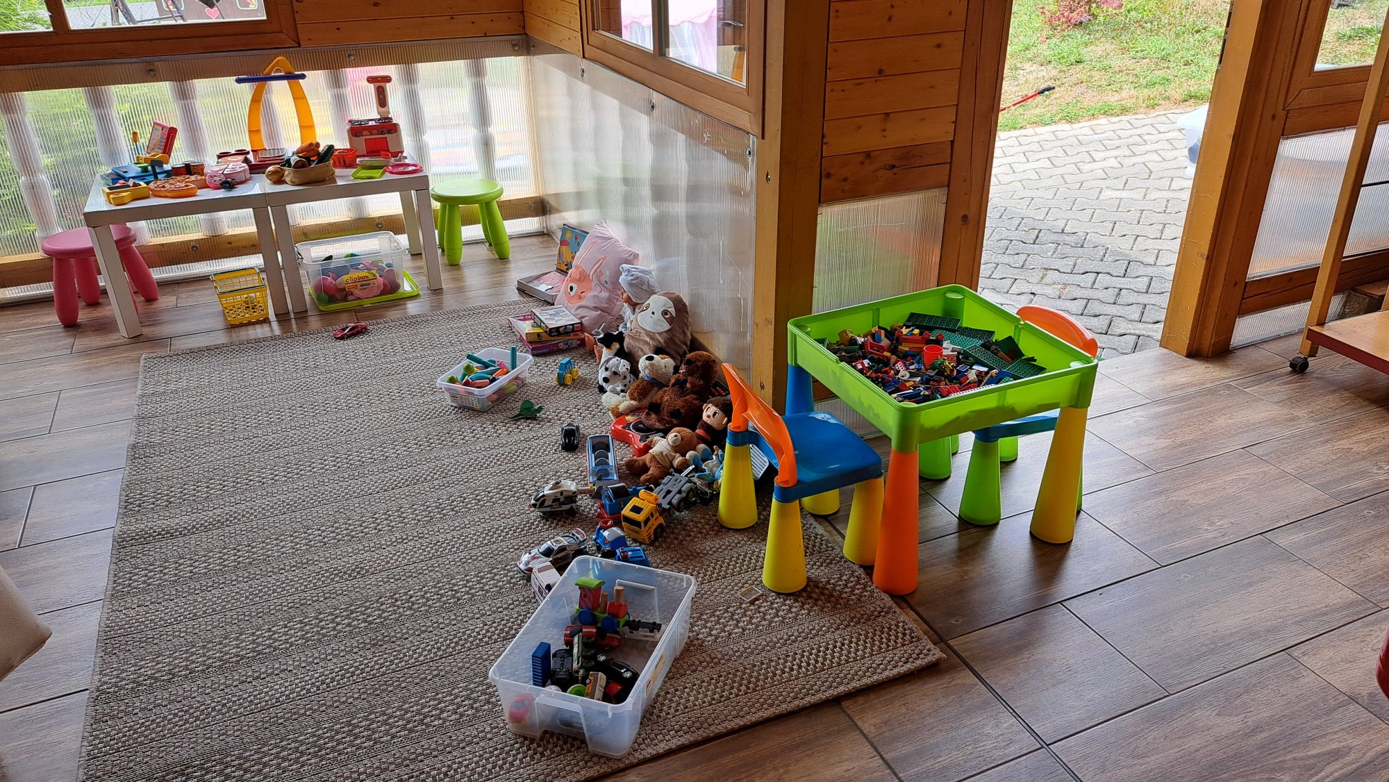 • Na venkovní aktivity míče, bazének, badminton a další.
