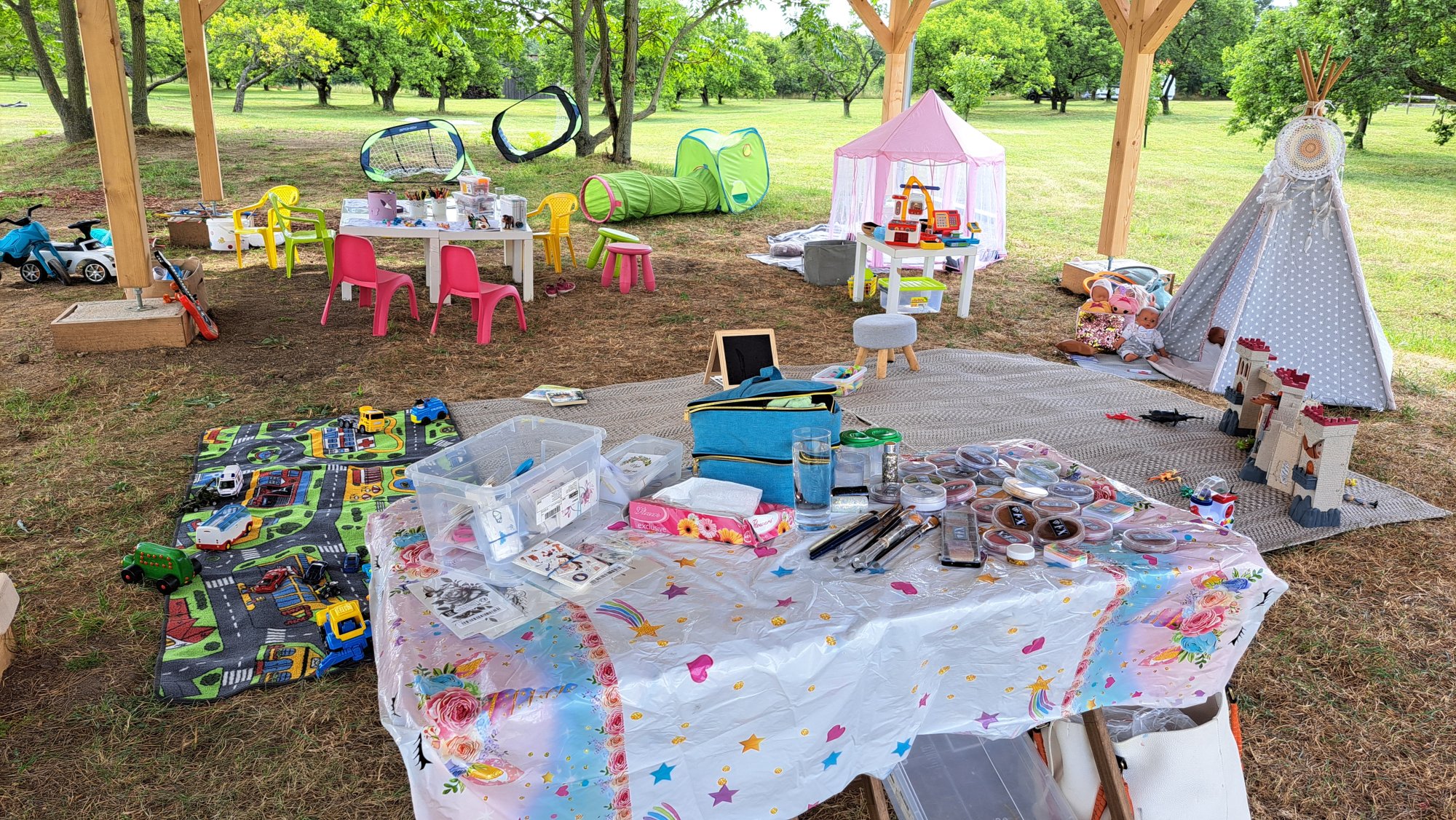 • v rámci herního koutku nabízím dětem aktivity s ohledem na jejich věk (hry, soutěže, hledání pokladu, výtvarné aktivity, malování na obličej, dětské tetování...)