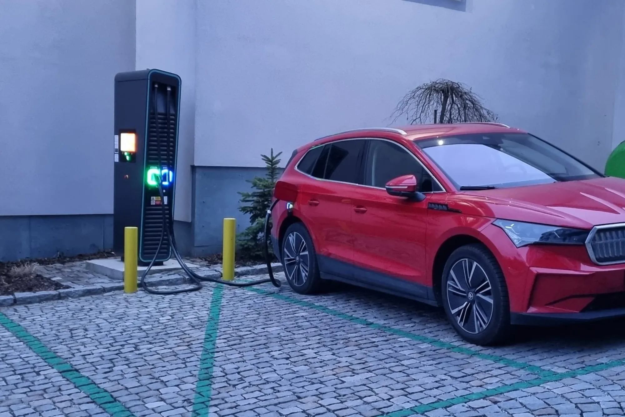 Rychlonabíjecí stanice pro elektromobily o výkonu 150 kWh a nabíjecí wallbox o výkonu 22 kWh v provozu od dubna 2023.