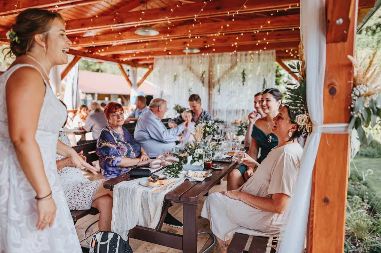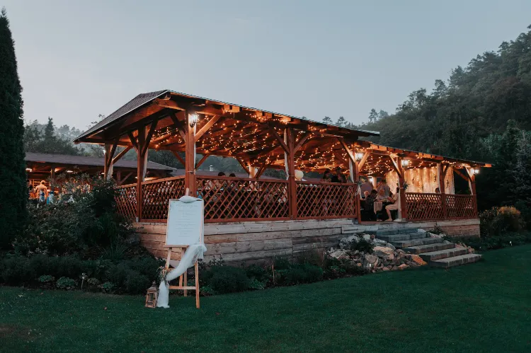 Areál je skvělou volbou pro svatby ve všech ročních obdobích bez ohledu na to, zda je sucho či nikoli. V případě deště lze totiž odpolední zábavu přesunout do vnitřního salonku, kam se pohodlně vejde až 50 osob. Na zahradě jsou k dispozici 2 zastřešené pergoly s výčepem a grilem, kde se může usadit až 120 osob.