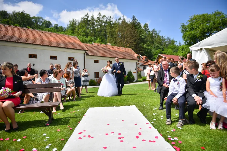 Obřady, které si snoubenci zajišťují sami, se nejčastěji uskutečňují na zahradě. Svatba v přírodě je velice oblíbeným motivem tohoto slavnostního okamžiku. Pokud by vám nepřálo počasí, tak v případě deště je k dispozici pergola. Vnitřní prostory se většinou využívají ke slavnostní hostině, přípravě všech náležitostí nebo jako herna pro děti. Venkovní pergola může sloužit jako místo pro odpolední zábavu, raut nebo občerstvení před obřadem. Areál Kadlcova mlýna svatbu dokáže po všech stránkách pokrýt a poskytnout odpovídající zázemí pro zábavu, odpočinek a výjimečnost okamžiku.