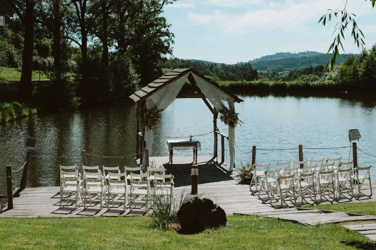 Vyslovte nejdůležitější slovo svého života na molu u rybníka s výhledem na okolní zalesněné kopce, nebo se vezměte bosky na louce obklopeni vzrostlými stromy. Romantice pod širým nebem se u nás meze nekladou. Nebo byste raději zimní intimní svatbu za zvuku praskajícího dříví v krbu? Osobní nebo okázalá svatba, uvnitř nebo pod širým nebem, areál celého našeho statku je vám exkluzivně k dispozici pro to, aby se vaše sny a představy staly skutečností.